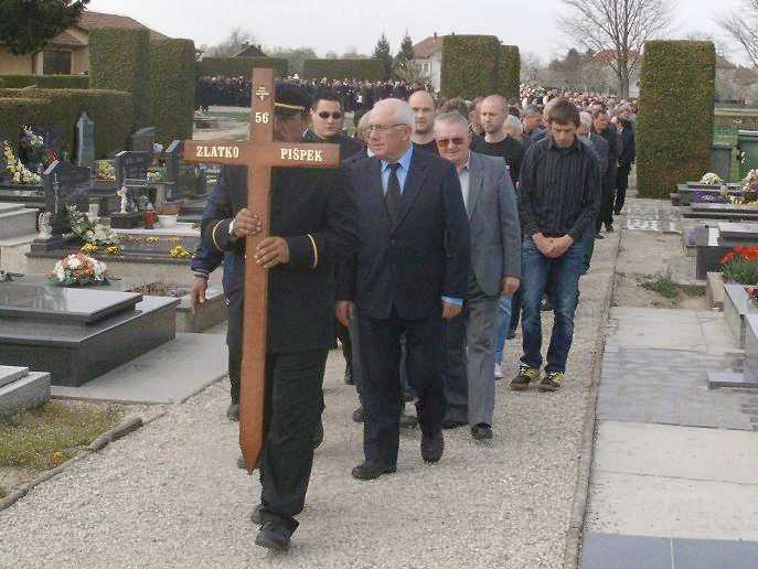 Zdravstveno stanje Zlatka Pišpeka (1955.) iz Kotoribe posljednjih mjeseci, pa i godine, nije bilo najbolje te je u nekoliko navrata bio na liječenju u Županijskoj bolnici u Čakovcu, a da bi njegovala bolesnog brata kući iz Australije vratila se i sestra Marija (1950). Zbog pogoršanog zdravstvenog stanja ove godine nije sudjelovao u radu Skupštine Društva za obilježavanje grobišta ratnih i poratnih žrtava koja je održana u subotu 3. ožujka u Varaždinu, kao ni na Trećem križnom putu grobištima i stratištima Varaždinske biskupije. U čakovečkoj bolnici posjetili smo ga 8. ožujka (Josip Kolarić i franjo talan op ft.), nakon čega smo se uputili za Štrigovu kako bi dogovorili detalje za završni dio Trećeg križnog puta grobištima i stratištima Varaždinske biskupije koji je održan 24. ožujka. Jedanaestu postaju molili smo kod spomen križa u Kotoribi, posvećenu stradalim žrtvama grobišta Leš, poginulim i nestalim Kotoripčanima, gdje smo bili u 16 sati, a tu nam se molitvi pridružilo i više desetaka župljana župe. Ove godine nije se mogao pridružiti Zlatko i njegova obitelj. Iako nije bilo planirano posjetili smo ga i zajedno izmolili molitvu Oče naš koju je predvodila članica Društva Barbara Turk. Zdravstveno stanje Zlatka pogoršalo se u utorak, 3. travnja te je u večernjim satima vozilom hitne prebačen u bolnicu u Čakovec. Dobro srce Zlatka nije izdržalo i ujutro oko sedam sati preselio je u Vječnost. Žalosnu vijest u srijedu ujutro prenijela mi je Dragica Markan, a kasnije smo saznali i vrijeme ukopa, četvrtak u 16 sati. Na ispraćaju Zlatka, uz rodbinu i prijatelje okupilo se i više stotina Kotoripčana i ljudi koji su s njime surađivali i radili. Obred sprovoda vodio je vlč Marijan Horvat, a uz članove Društva iz Čakovca, Varaždina, Ludbrega oproštaju su prisustvovali i mladi iz Udruge Hrvatski domobran Čakovec – Varaždin. Kako na Veliki četvrtak, posljednji dan korizme, započinje Vazmeno trodnevlje i nema mise, a na večer je u svakoj župi misa večere gospodnje, misa za preminulog Zlatka služit će se u Kotoribi u utorak navečer u 18 i 30, 10. travnja 2012. godine. Na groblju se u ime od Zlatka Pišpeka, uzornog vjernika, promicatelje istine i hrvatskog domoljuba oprostila Dragica Markan koja je rekla: - Dragi Zlatko! Sve koji smo te cijenili kao dobrog prijatelja ostavio si na svom dugom putu u tuzi i žalosti. Još kao dijete čula sam od starijih ljudi koji govorahu - Najteže je rastanak s prijateljem. Jednoj osobi nisi bio samo prijatelj? Bio si joj i dragi mili brat. Tvoja sestra Marija toliko je shrvana tvojim odlaskom da Ti ne može pročitati svoje riječi koje ti svakako želi uputiti. Zato sada ja progovaram u ime tvoje sestre: Dragi brate! Ja se ponosim tobom. Zbog siromaštva morala sam poći u tuđinu, kada si Ti imao 12 godina. Težak je bio tvoj i moj život, ostao si bez oca sa 16 godina, pa si preuzeo svu brigu na sebe da olakšaš i pomažeš majci i bratu. Prošlo je dosta godina kako nisam mogla doći, ali zadnjih 15 godina smo natrag uspostavili bratsku ljubav, ali dragi Bog je htio drugačije. On je imao drugi plan za tebe, a ja sam mu zahvalna što sam te imala 56 godina. Ja sam sada s tobom, ali moram poći svojoj obitelji u daleku Australiju. Zahvalna sam ti dragi brate Zlatko. Uvijek ćeš biti u mojim mislima i molitvama. Tvoja sestra Marica, šogor Martin i nećaci Stiven i Ivica s obiteljima Neka je blagoslovljena tvoja vječnost. Iskreno zahvaljujem tvojoj dragoj obitelji na svemu što su ti pružili u tvojem životu, a posebno sada kada je bilo najteže i najpotrebnije. U ime Društva za obilježavanje grobišta ratnih i poratnih žrtava Varaždin i Čakovec oprostio se i Franjo Talan, a u svom govoru rekao je: Ožalošćeni članovi obitelji i dragi prijatelji Zlatka! Danas na veliki četvrtak, 5. travnja 2012. godine okupili smo se na ovome mjestu kako bismo na posljednji počinak ispratili našeg Zlatka. Iako smo znali za zloćudnu bolest od koje je Zlatko posljednjih godina bolovao nadali smo se da je ovozemni rastanak još daleko i da će Zlatko prebroditi i nadvladati bolest i zajedno sa suprugom Anicom, obitelju, prijateljima i poznanicima dočekati mirnu starost. Zlatko je rođen 6. rujna 1955. godine. Živio je zajedno s roditeljima koji su uz Zlatka imali još troje djece, Ljubicu koja umire kao dijete, Mariju i najmlađeg Zdravka. Cijeli život proživio je u voljenom mjestu i župi čiju povijest je dobro poznavao i više nego što su povijesne knjige zapisale i službene strukture vlasti dozvolile. Djetinjstvo je zajedno s braćom proveo uz roditelje, oca Stjepana i majku Elizabetu za koju je sam rekao da je bila križarica koju mu je u srce usadila ljubav prema zavičaju, Hrvatskoj domovini i Bogu. Osnovnu školu polazio je u Kotoribi, a srednju - metalski smjer u Čakovcu, te poslije u Varaždinu završava za energetičara i kotlove pod tlakom. Ženidbom za Anicu osniva vlastitu obitelj u kojoj je rođeno troje djece, pokojna Patricija, sin Mario i kćerka Valentina, a odrastanjem djece obitelji se priključuje i zet Danijel te unuk Alan. Zlatko je bio istinski domoljub, uzoriti vjernik župe Kotoriba, bivši član crkvenog vijeća, te predsjednik ekonomskog vijeća župe Kotoriba. Dobitnik je spomenice domovinskog rata, član Udruga hrvatskih veterana domovinskog rata. Boljela ga je nepravda i ponižavanje ljudi u doba komunističke vlasti koje su se okomile i na brojne Kotoripčane koji su bili proganjani, zatvarani i mučeni, a neki su i životom platili neuklapanje u novu civilizaciju koja se represijom i progonima stvarala pod čvrstom šakom komunističke partije, državnog, policijskog i vojnog aparata. Boljelo su ga nepravde i ponižavanje Crkve i vjernika kako u vrijeme školovanja tako i u javnom životu te je s oduševljenjem dočekao uvođenje demokracije i osamostaljenje Hrvatske. Ne mireći se s prešućivanjem istine i hrvatskih žrtava i stradanja u doba Dru