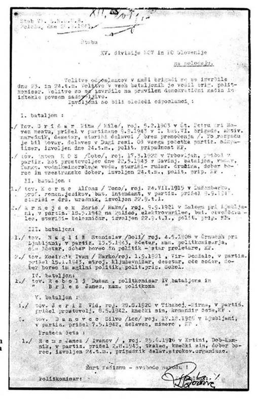 odseka v »glavnem štabu Slovenije«; Ziher1 Boris, publicist; inž. Žagar Pavle; Železnik Tine; delavec;