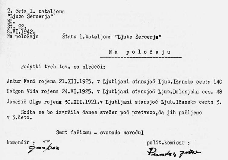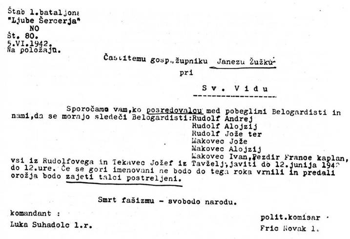 dostojanstvenike in oblastnike, ki so zločinsko delo Osvobodilne fronte proti