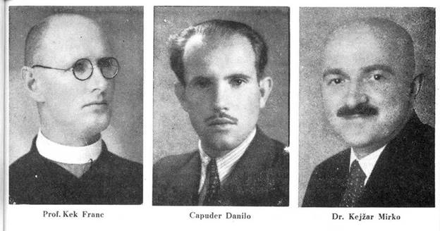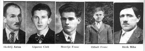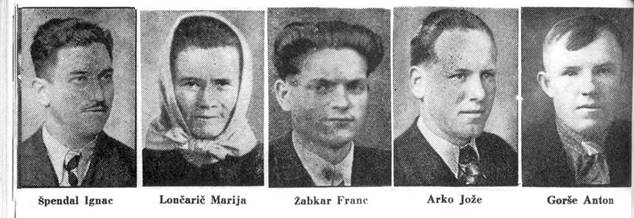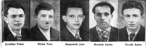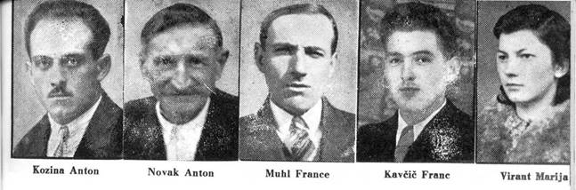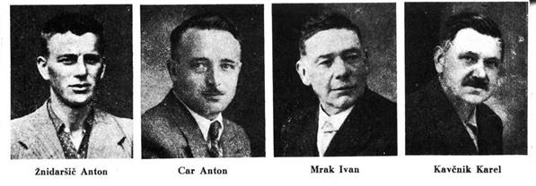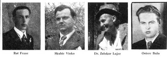 Josip, profesor; dr. Vi1fan Jože; Vipotnik Albin, rudar; Vrhovec Lojze, vodja