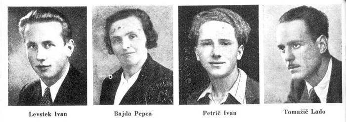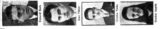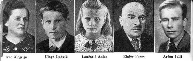 uradnik; Rupena Mara, učiteljica; Rupena Zora, učiteljica; Rus Jože. sodnik; Semič Stane - Daki, komandant »brigade«, delavec;