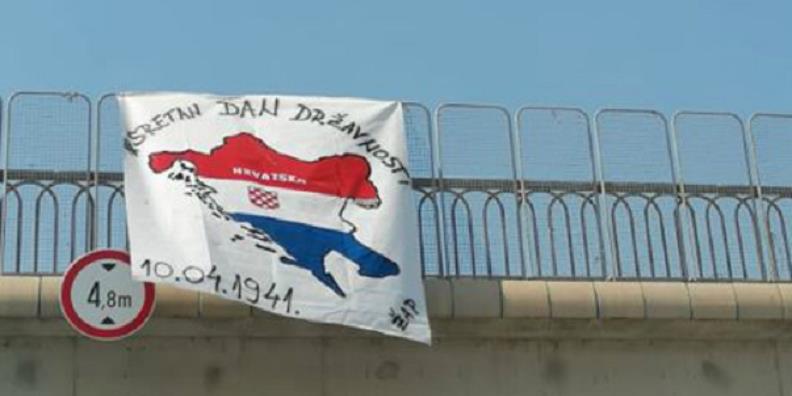 Nakon što su 10. travnja, dan osnivanja zločinačke Nezavisne Države Hrvatske, polaganjem vijenaca na splitski spomenik pripadnicima HOS-a obilježili bivši članovi te paravojne jedinice predvođeni Markom Skejom. U tužnom slavlju pridružili su im se i nepoznati simpatizeri krvničke ideologije poglavnika Ante Pavelića postavljajući veliki transparent na jednom od nathodnika na cestovnom ulazu u Split.