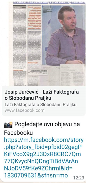 BUJICA: https://www.youtube.com/watch?v=ECO3MkP7aU8 U jučerašnjoj Bujici je dan i razgovor s Stjepanom Tuđmanom. Nedavno smo zajedno bili nazočni kod otkrivanja spomenika hrvatskom predsjedniku Franji Tuđmanu. O tome sam pisao i svojim kolegama akademicima još 15.12.: "3.Predsjednik je naveo imena akademika koji su bili na otkrivanju spomenika predsjedniku Tuđmanu. Mene nije spomenuo! Valjda zato što su oni pozvani zato što su akademici, a ja sam pozvan zato što sam Josip Pečarić. Prijatelj i autora i obitelji Tuđman. Da je malo bolje pogledao vidio bi da Stjepan Tuđman sa kćerkama nije sjedio u prvom redu gdje su mu rekli već u sedmom do mene! Neobično mi je što nije primijetio da sam se zajedno sa hrvatskim generalima i članovima obitelji Tuđman slikali s kardinalom Bozanićem, koji me je veoma srdačno pozdravio. Vjerojatno je i znao da ja tamo nisam zato što sam akademik. Zato se moram zahvaliti Predsjedniku, koji vjerojatno i ne zna da sam neizravno i spomenut u govorima jer je Bandićeva zamjenica u svom govoru citirala pismo Henrya Kissingera predsjedniku Tuđmanu koje sam ja dao u Proslovu knjige „Za hrvatsku Hrvatsku" iz 2001. g. Na predstavljanu je bila nazočna i gđa Tuđman koja je poslije toga i pronašla to pismo. Na misi za Predsjednika bio sam, kao i ranije, s hrvatskim generalima. Misu je predvodio biskup Vlado Košić, koji je blagoslovio i konferenciju MIA 2018. i govorio o mom domoljubnom radu. Sve to imate u knjizi koja nije spomenuta u izvješću Predsjednika. Priznajem, ni ja nisam primijetio spomenute akademike (osim akademika Reinera) na misi za Predsjednika!" U jučerašnjoj Bujici kao da su znali dali su sliku s tog događaja kao potvrdu onog o čemu sam pisao: VIDJETI PRILOG! Pozz Josip