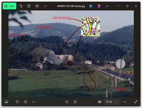 1. Snimio je dragutin 2000.g. neka vam oznake nešto ispričaju kao kalvarija nad Hrvatima kod Gornjeg Doliča, mjesto za koje Slovenski državni zbor bilježi 1999.g. da je tu bilo pobijeno oko 8 hiljada Hrvata pretežno civili. Poznato kao „BLEIBURG PRIJE BLEIBURGA“ !!! 2. U naslovu ove slike je „U60“ što je za Slo-cioniste ne za Hrvate već za one strašne Ustaše !? 3. Ispod ceste vidi se crveni krug a prema izjavama domaćih ljudi tolika ih je tamo pokopano. 4. Vidi se i crveni mali krug, na kojem mjestu je bila nekad kapela i na njoj na hiljade imena !? 5. Svijetu su poznati dragi nam KONJI, oznaka u maloj slici znači 480 pobijenih i zakopani. 6. Dole desno u kutu se vidi crveni zapis „DOLIČ“ – zapravo Gornji Dolič
